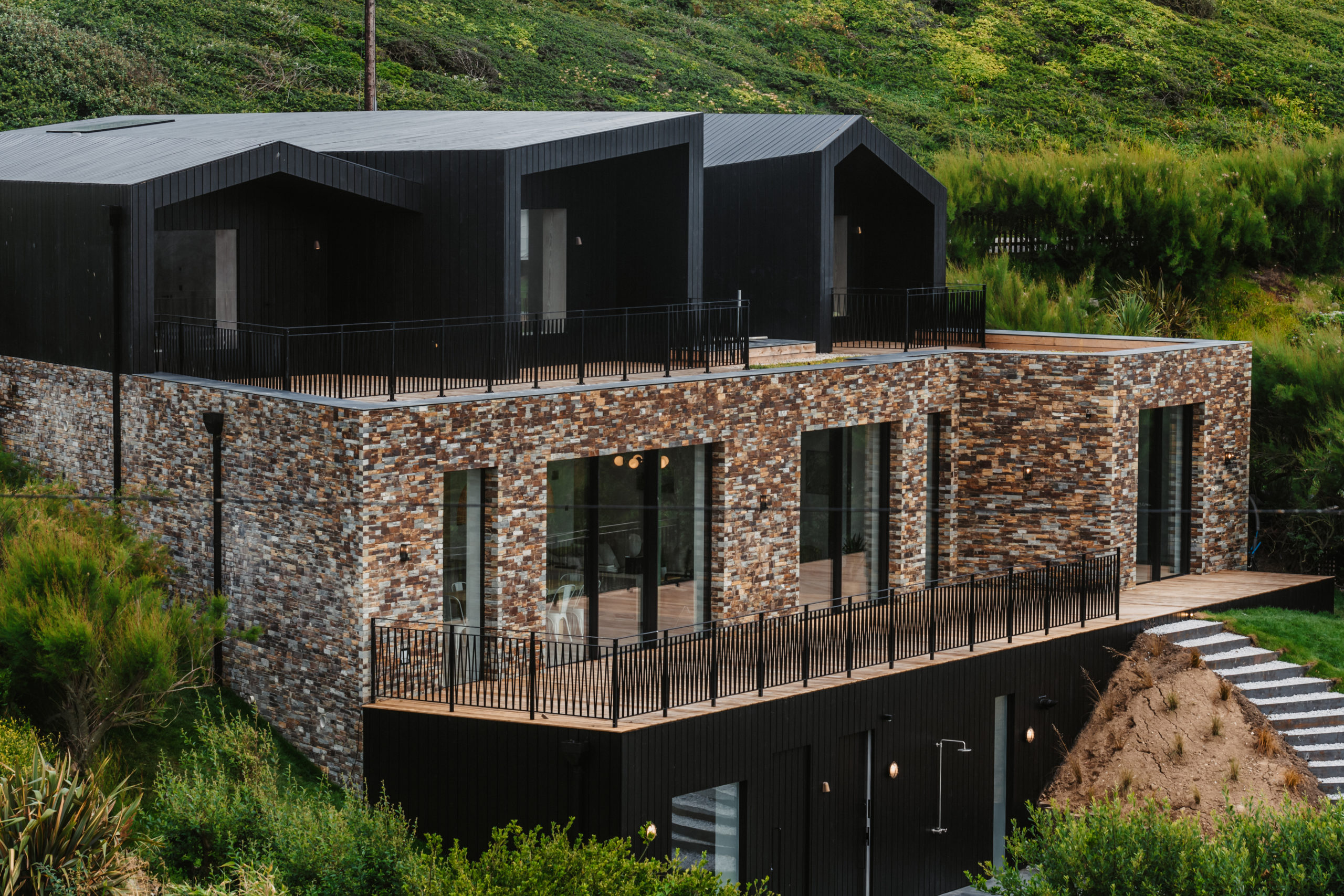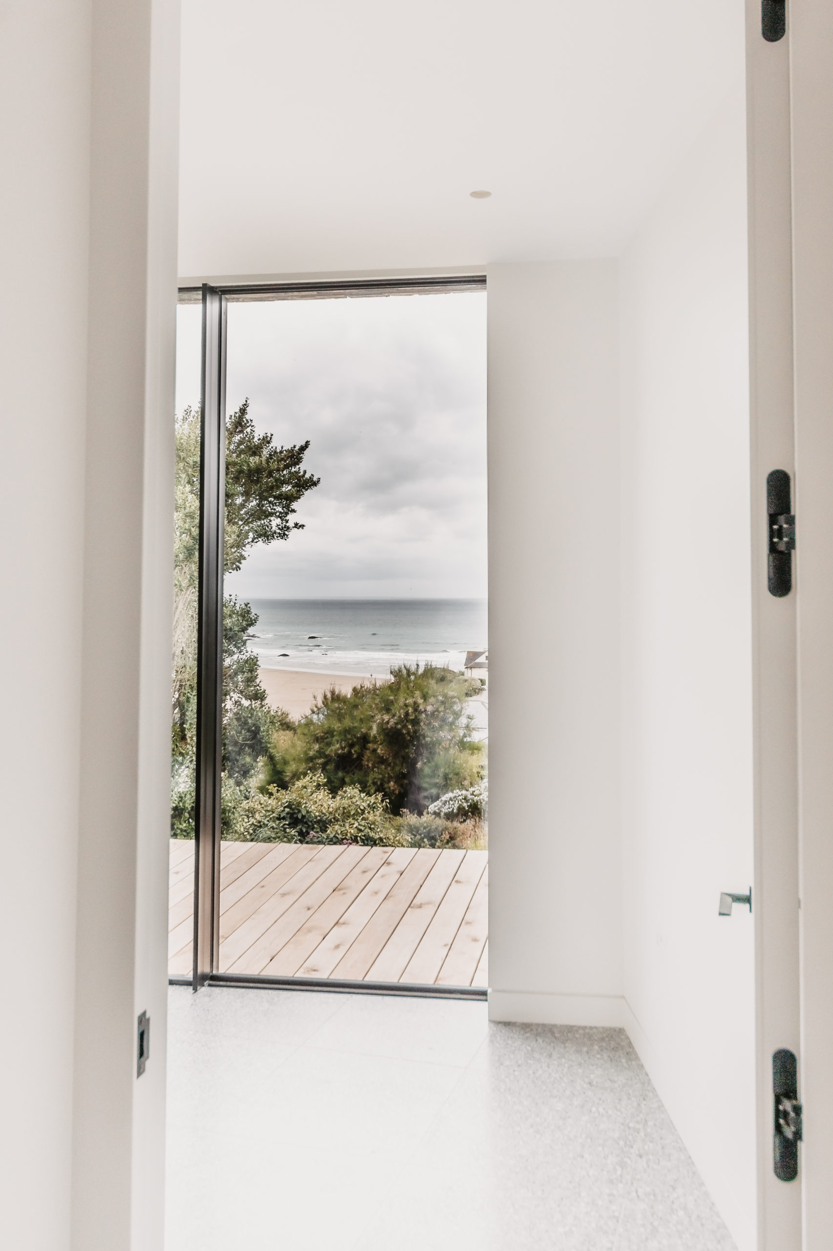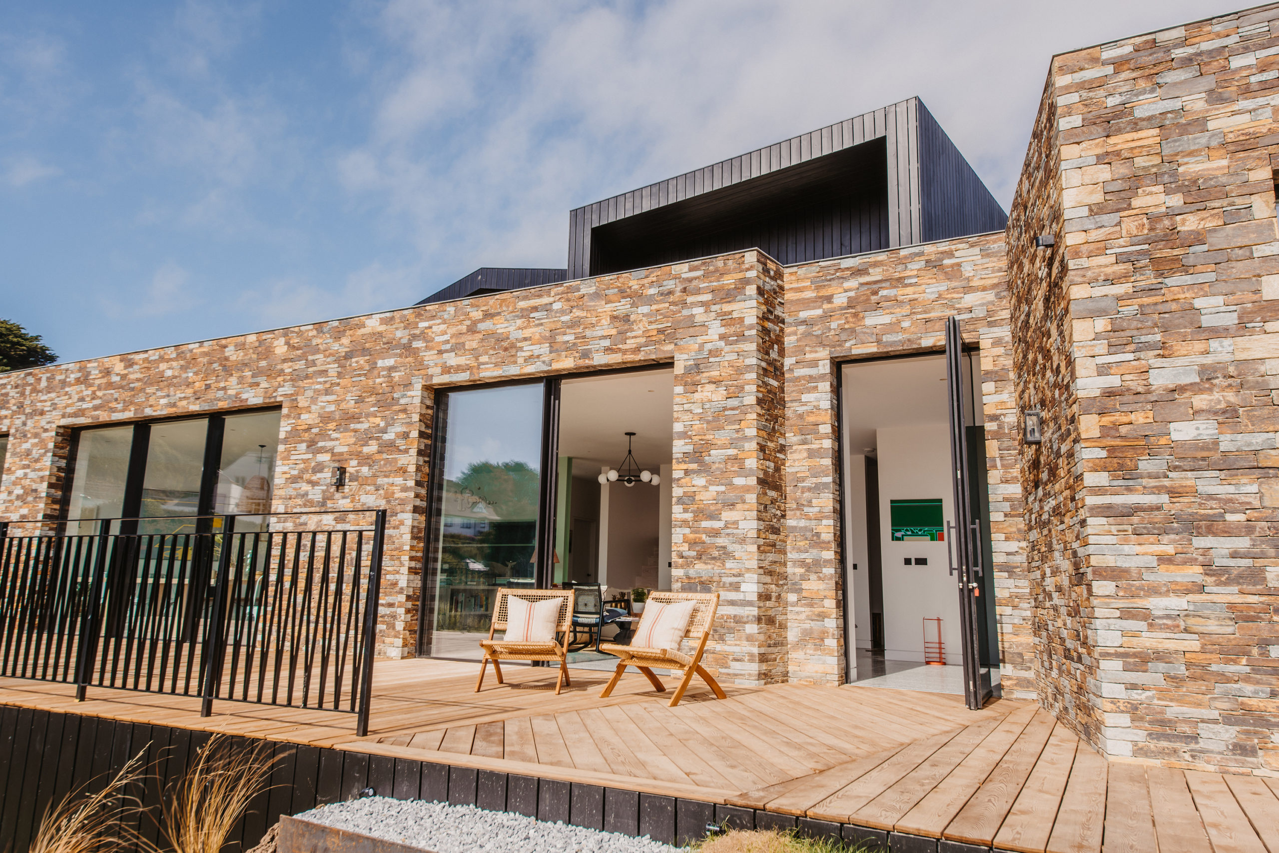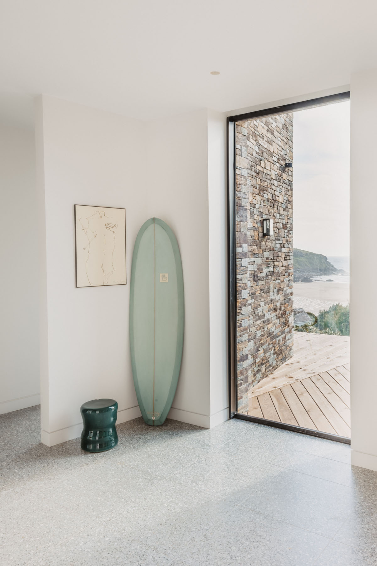 Set high above Mawgan Porth beach, Dynargh is a striking contemporary home designed by Watershedd Architects. The property makes the most of its hillside position, using natural materials and panoramic glazing to capture the coastal light and views.